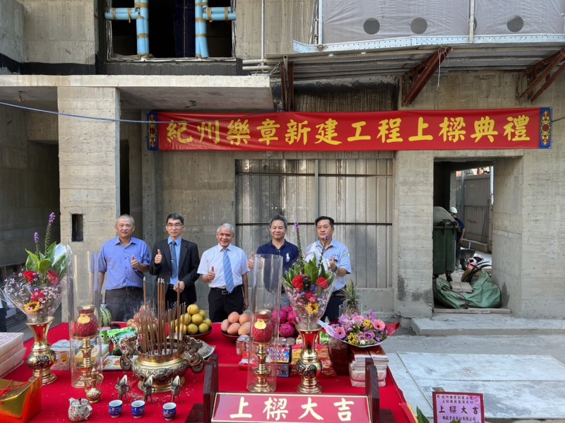 公股挺都更危老,由政府政策性成立的泛公股事業「臺灣金融聯合都市更新服務公司」協助地主以自地自建方式進行危老重建的台北市中正區金門街「紀州樂章」案,在今天(20日)由地主、金融都更公司、華南銀行、營造廠樹盛公司、建築師等共同舉行上樑典禮。